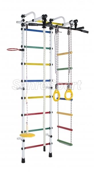 Komplektą sudaro: gimnastiniai žiedai, virvinės medinės kopėtėlės, virvė, sėdynė-blynas („Tarzankė“), krepšinio lankas.