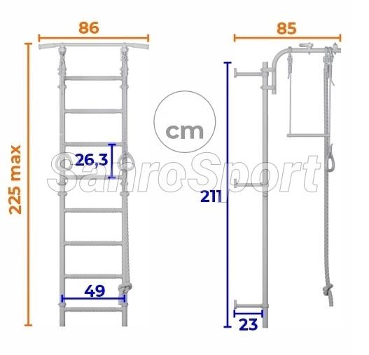 Vaikų sporto kompleksas SANRO TOPLINE yra tikras hitas švediškų sienelių linijoje. Jis lengvai surenkamas ir pritvirtinamas prie sienos su judančiomis tvirtinimo detalėmis. Jie leidžia pritvirtinti sienelę įvairiose padėtyse, įskaitant kampines. Galite racionaliai pastatyti tvirtinimo detales jums tinkamame aukštyje ir išvengti įkritimo į laidus ar ertmes sienoje. Vienas iš svarbių šio komplekso privalumų yra reguliuojamas skersinis, kuris tvirtinamas patikimais spaustukais. Jis gali būti montuojamas ant laiptų bet kokiame aukštyje, priklausomai nuo vaiko amžiaus. Į kompleksą SANRO TOPLINE įeina masažiniai skersinukai, kurie lavina motorinius įgūdžius ir apsaugo nuo plokščiapėdystės.