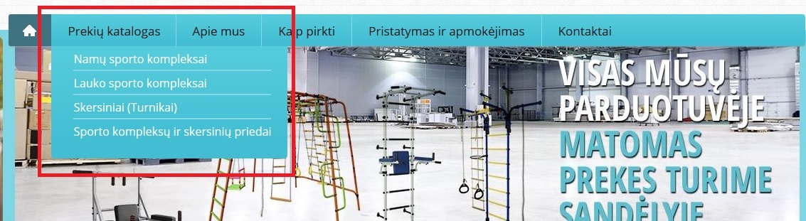 Padaryti užsakymą labai paprasta. Pasirinkite Jus dominančią prekę iš pagrindinio katalogo puslapio viršuje, kaip nurodyta nuotraukoje: