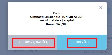 Pasirinkite, ką toliau darysite: pereisite į krepšelį ar tęsite kitų prekių paiešką: